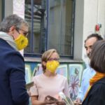 Im September kam die Aachener OB Kandidatin Sibylle Keupen an einem Nachmittag zum Strickcafé der Save-me-Kampagne.